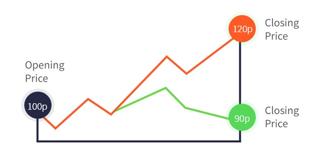 إذًا، كيف يعمل هذا العقد بالضبط؟ من الناحية الأساسية، يتم حساب الربح والخسارة من خلال النظر إلى الفرق في سعر الأصل بين وقت إبرام العقد ووقت انتهاءه. ويعني ذلك أن الوسيط - أو "البائع" - الذي يبرم هذا العقد معك سيدفع لك الفرق بين سعر الأصل في بداية العقد وسعره عند انتهاء العقد. وإذا حدثت خسارة، سيدفع المتداول - "المشتري" - الفرق في السعر إلى الوسيط.