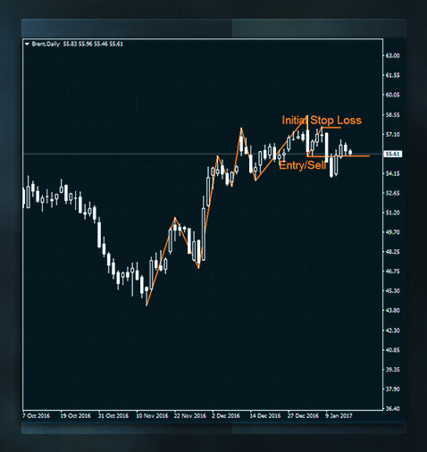 وبشكل أكثر تحديدًا، يجب وضع أمر إيقاف الخسارة الأولي عند قمة النمط الانعكاسي للدخول للبيع في السوق.