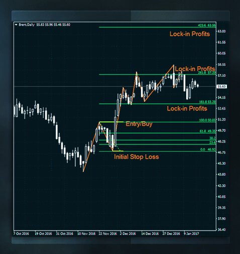 وبالمثل، فوضع مستويات محددة مسبقًا لجني الربح والحصول على الأرباح بمجرد الوصول لتلك المستويات هي من الطرق التي تحظى بالشعبية أيضًا. ويمكن استخدام طرق عديدة لحساب المستويات المحددة مسبقًا، ومن الطرق الشهيرة المستخدمة في هذا الصدد مستويات فيبوناتشي (1.618 و 2.618 و 4.236). وصحيح أن هذه الطريقة قد تحقق أرباحًا أصغر مقارنة بإغلاق المركز كله عند الانعكاس في الاتجاه العكسي، ولكن من المهم أيضًا أن نتذكر أن هذه الطريقة تقلل أيضًا من الهبوط في سعر الأصل، وهي ميزة كبيرة فيما يتعلق بنفسية المتداول.