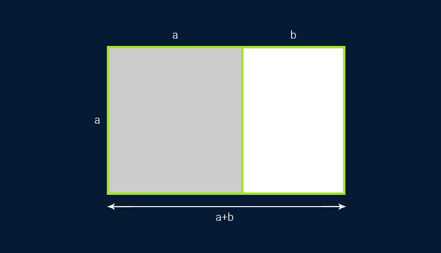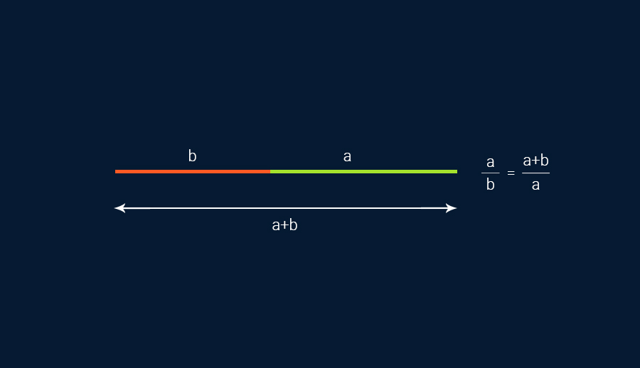 Similarly, the ratio exists in golden rectangles with side a (long side) and b (short side):
