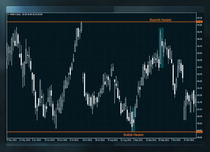If this same pattern is found near the resistance line, then it’s called a bearish Harami and signals a sell alert. Similarly, if the price were to fall below the low of the longer body, then a sell signal is triggered.