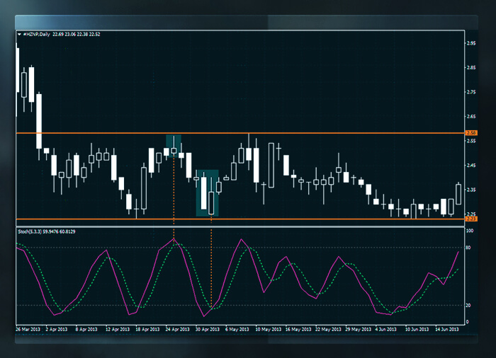 Stochastics, and other bounded indicators, oscillate between 0 and 100 levels. If it goes below 20, it’s a typical sign of an oversold market and if it’s above 80, it’s a sign that the market is overbought.