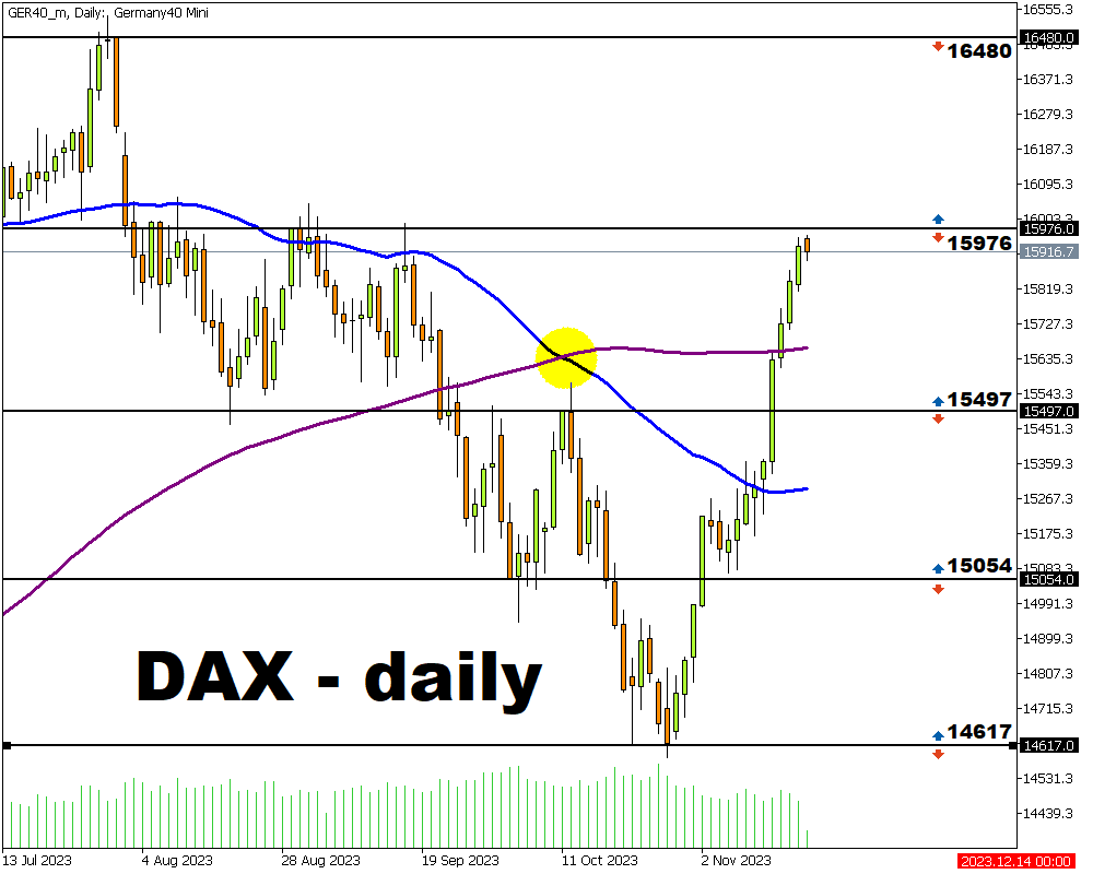 A nivel técnico, el DAX está generando un rebote importante, porque después de haber tocado fondo en 14617, ha subido con fuerza, rompiendo las medias móviles de 50 y 200 días que todavía mantienen el cruce bajista de la “muerte”.