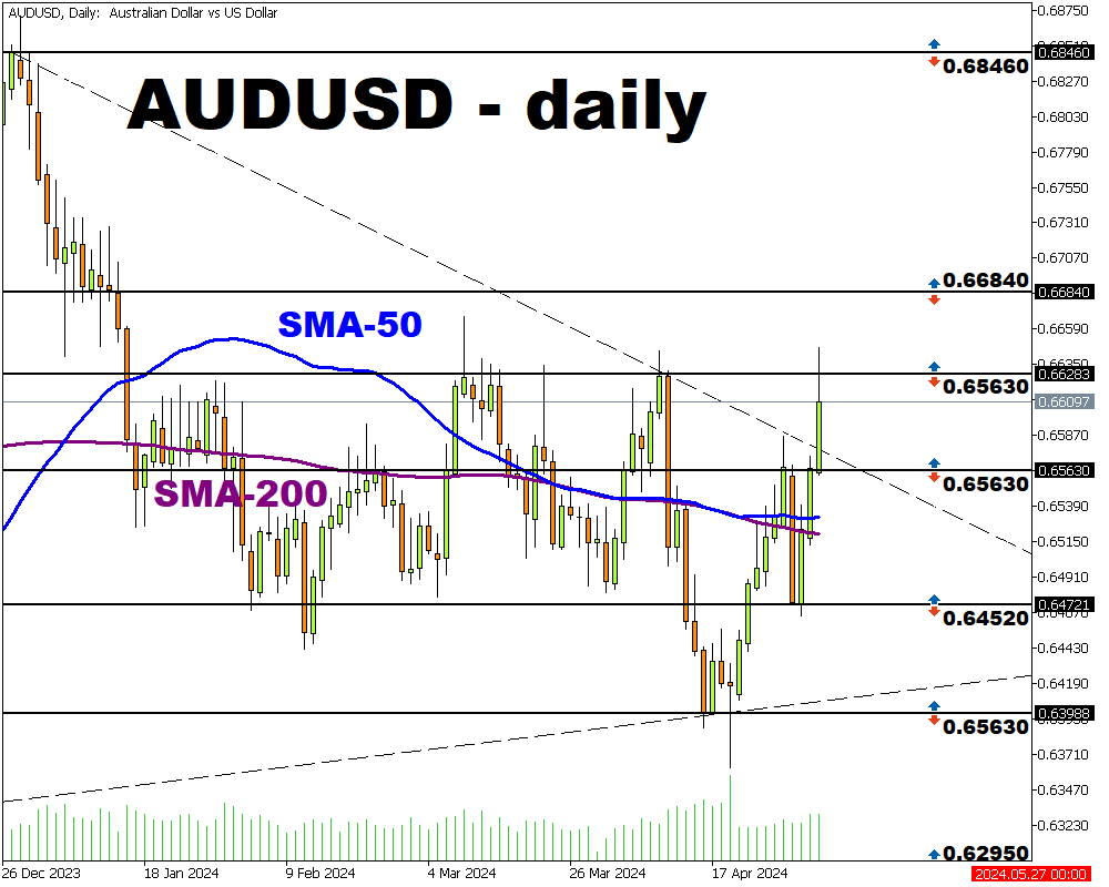 A nivel tecnico el AUDUSD viene experimentando una recuperación tras haber tocado un mínimo en 0.65630, desde ese nivel ha generado un importante rebote, donde ha roto en primer lugar la línea bajista formada en diciembre pasado.