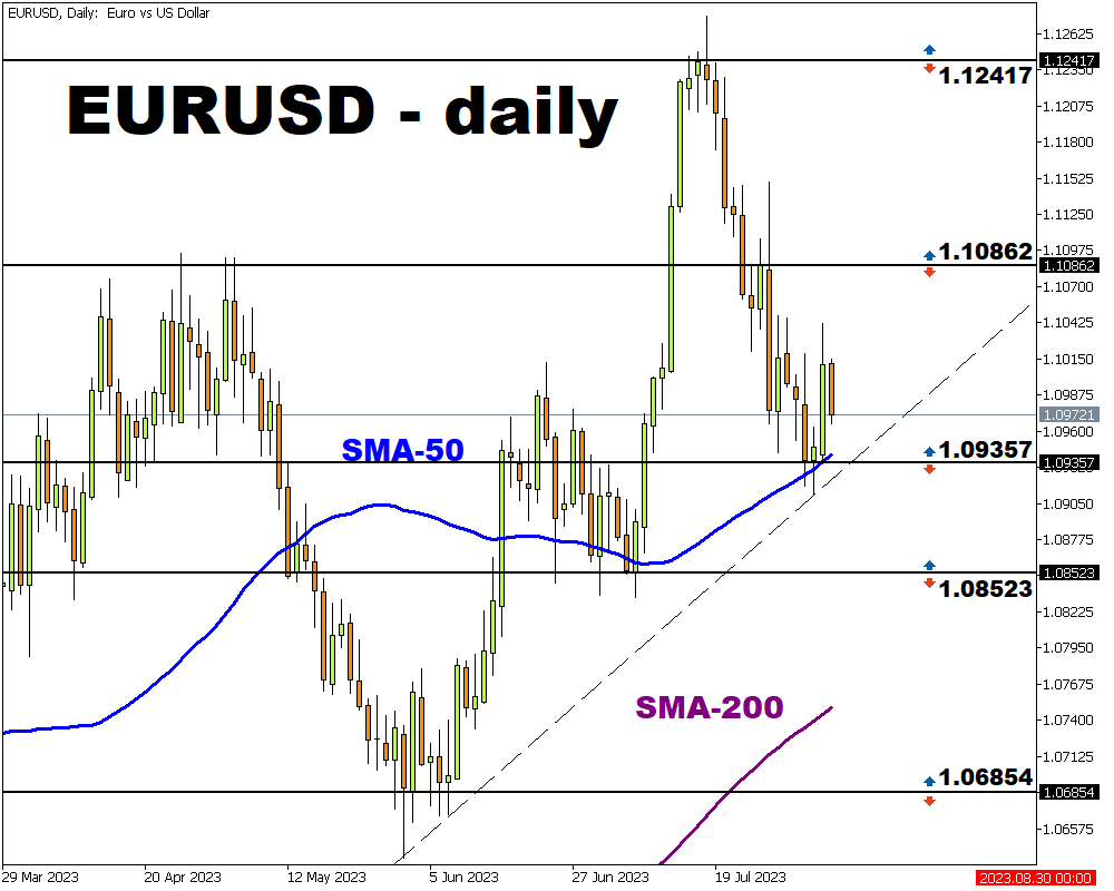 Es por esto que a nivel tecnico el EURUSD estaría buscando consolidar un nuevo punto pivote sobre 1.09357 (SMA-50) para buscar extender la tendencia alcista de mediano plazo, porque en el caso contrario una fortaleza del dolar lo haria corregir aún más.
