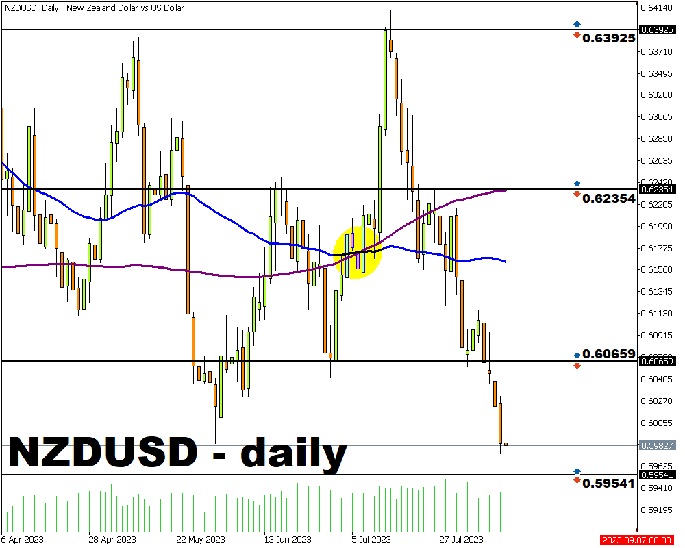 Esta caída ha generado el cruce bajista de la “muerte” entre las medias móviles de 50 y 200 días, lo que produce una mayor presión bajista sobre el par. Es por este motivo que el NZDUSD ha llegado a caer hasta 0.59541.-