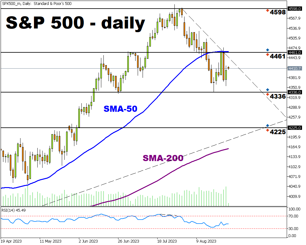 Tras alcanzar ese nivel ha comenzado a corregir, rompiendo en primera instancia la SMA-50 para caer hasta 4336, en ese nivel ha rebotado, pero no ha logrado superar de Vuelta la SMA-50 que ahora se convierte en resistencia, por lo que comienza a consolidar una pequeña tendencia bajista.