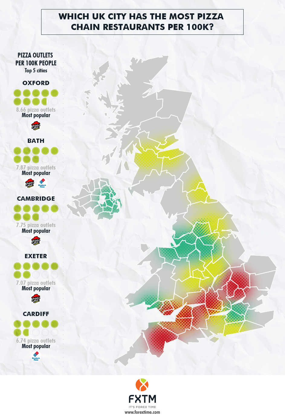 Based on the following pizza chains, we worked out which university cities boast the most takeaway pizza restaurants per 100k: