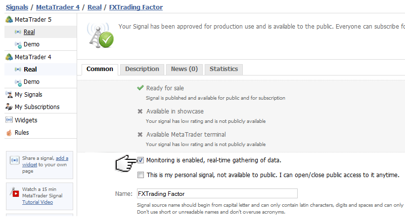 To disconnect a signal you must click on My Signal first, then press edit on the upper right corner of the webpage and tick the checkbox title "Monitoring is enabled".