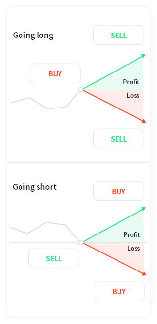 พื้นฐานในการเทรด CFD ดัชนีก็คือการเลือกว่าจะเปิด Long หรือ Short หลังใช้กลยุทธ์การเทรดดัชนีของคุณ คุณอาจได้ข้อสรุปว่าการซื้อดัชนีโดยเปิดสถานะ Long น่าจะดีกว่า จากนั้น คุณจะถือสถานะไว้โดยคาดว่าราคาจะปรับตัวเพิ่มขึ้น หากเป็นเช่นนั้น คุณก็จะปิดสถานะเมื่อราคาสูงขึ้นและได้กำไร